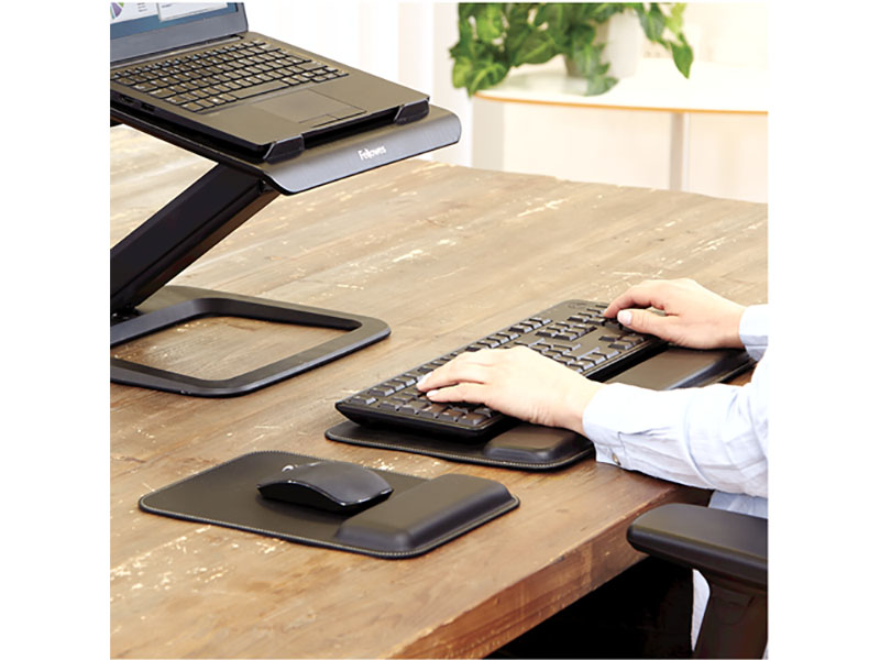 Le repose-poignets HANA ajoute un confort supplémentaire au poste de travail.