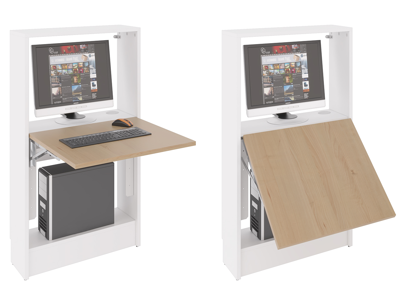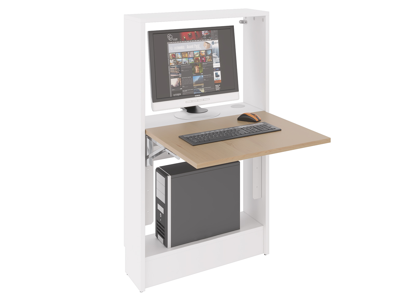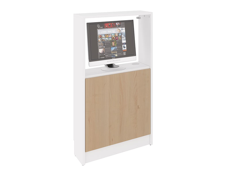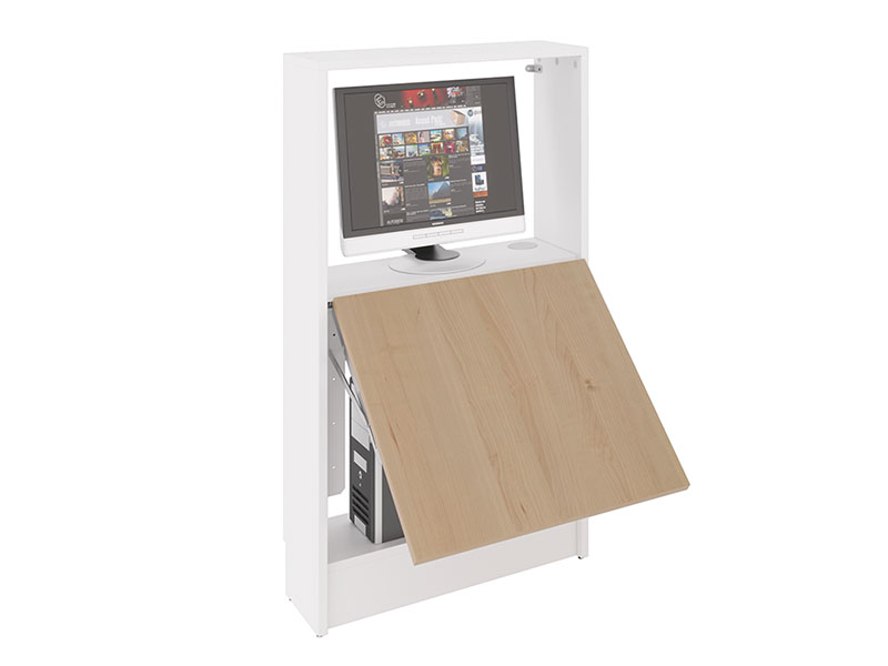 WALLTAB dispose en partie basse d’une zone de rangement pour unité centrale.