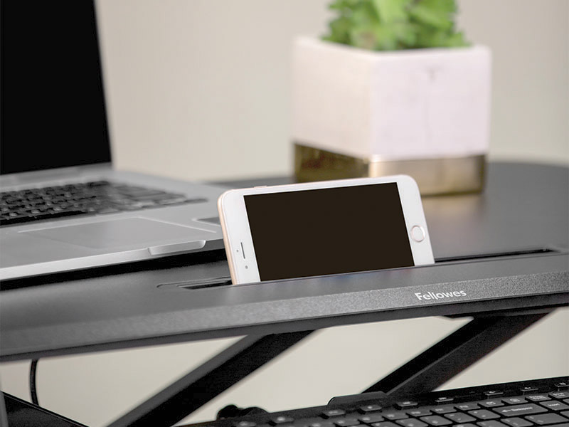 La plateforme assis-debout CORSIVO transforme votre espace de travail statique en un espace de travail dynamique.